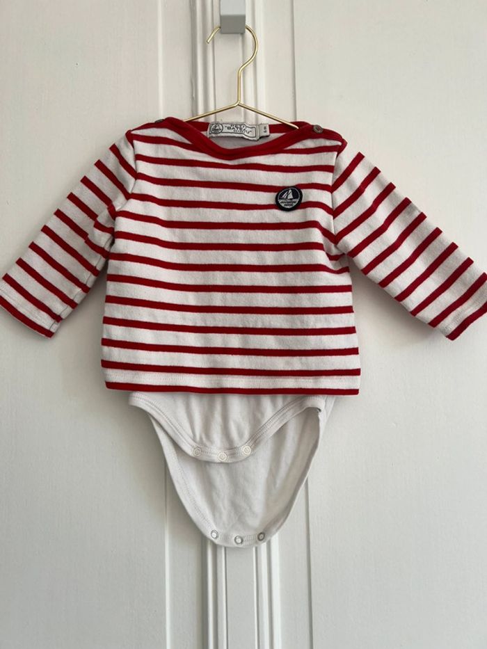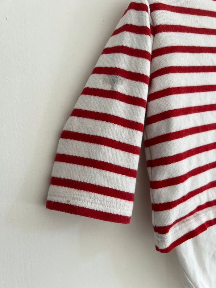 Pull-body petit bateau 6 mois Rayé marinière rouge Body intégré au pull, super pratique ! Malheureusement taché sur une manche (cf photo) #lgti6mois