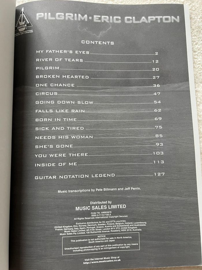 Partitions Éric clapton pilgrim Très bon état #lgtilivres