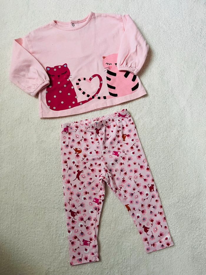 Ensemble Catimini 9 mois TBE Motif chats Seul défaut un petit trou sur le devant du t-shirt (cf photo) #lgti9mois