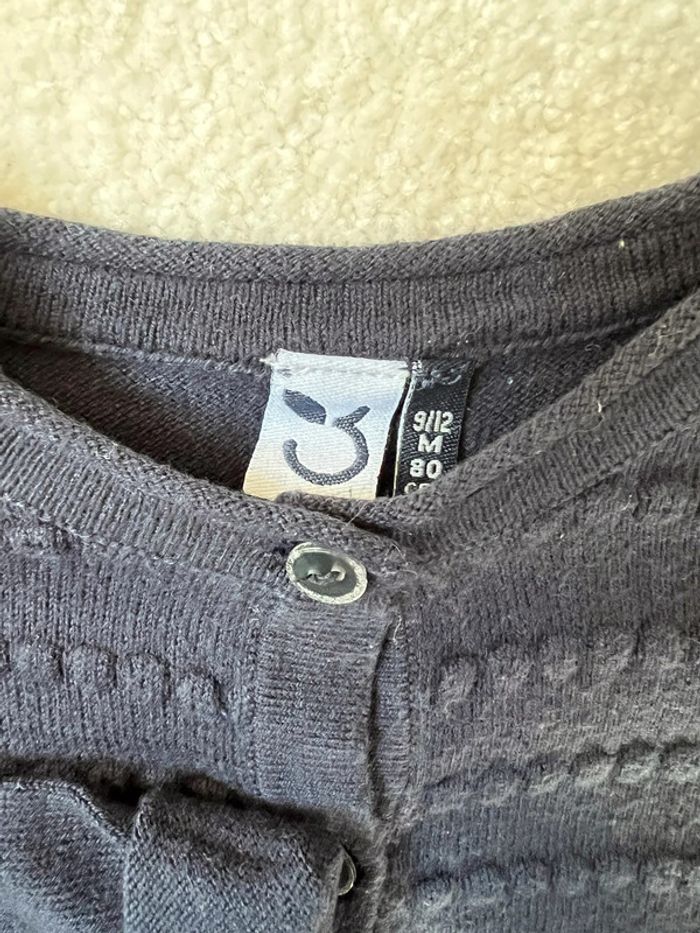 Gilet 3 pommes 9-12 mois Bleu marine Taille plutôt grand Quelques très légères bouloches #lgti12mois