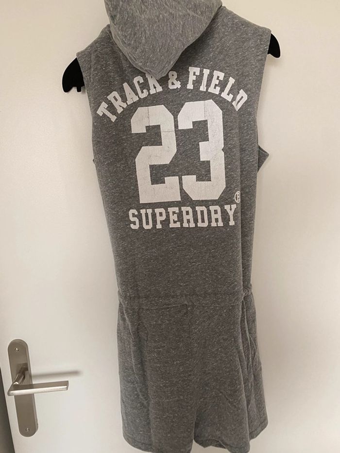 #lgtixs Combishort grise superdry taille XS très bon état, quelques légères craquelures sur le flocage au dos (cf photo)