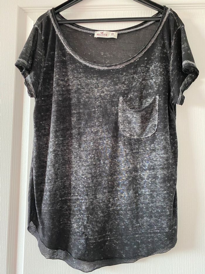 T shirt gris chiné/noir hollister - photo numéro 1