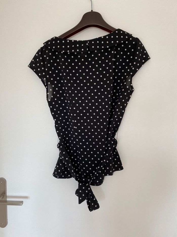 #lgtim Top noir et blanc h&m noir à pois blancs, matière fluide très agréable à porter ! ceinture en tissu amovible assortie état comme neuf taille 38, peut convenir à un 36 #lgtiS #lgtiM