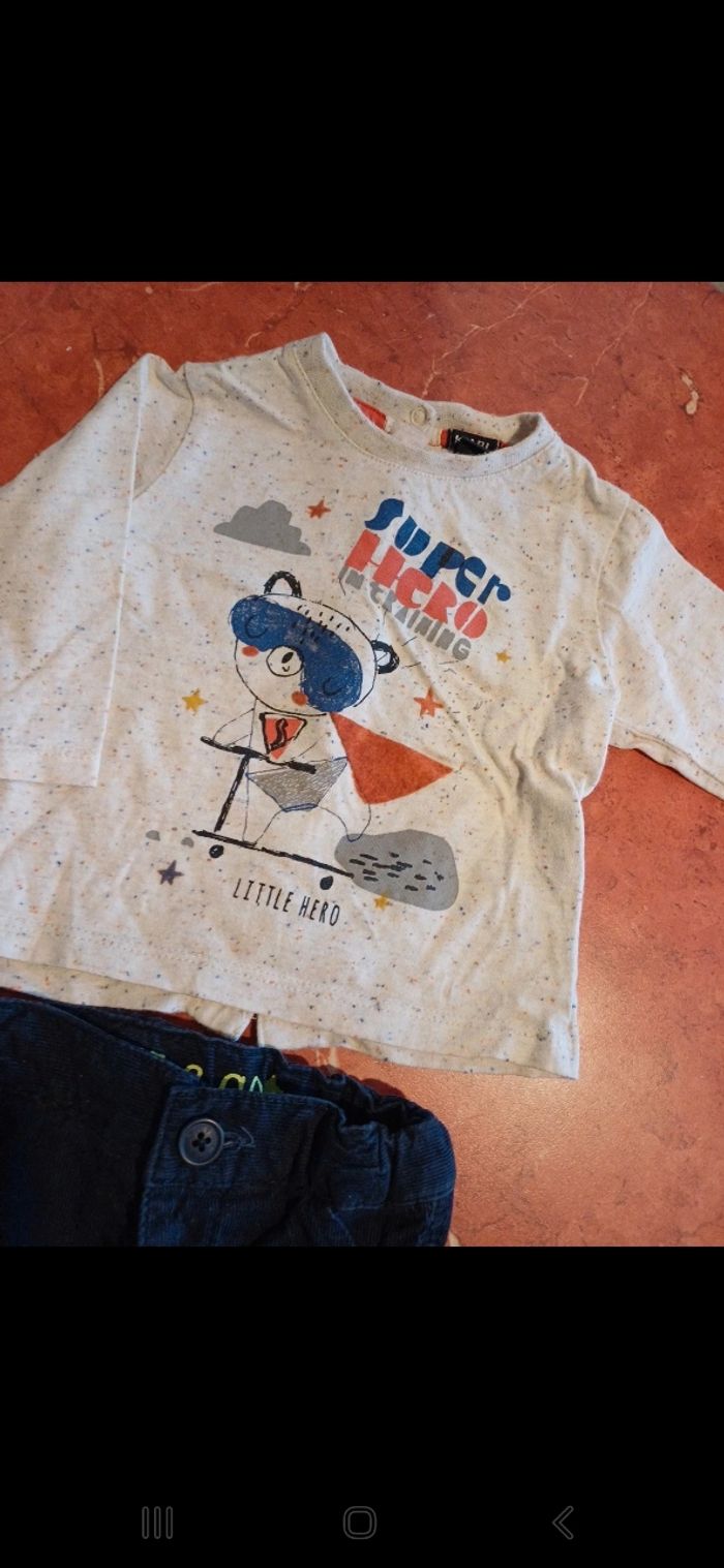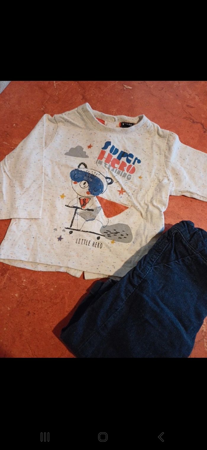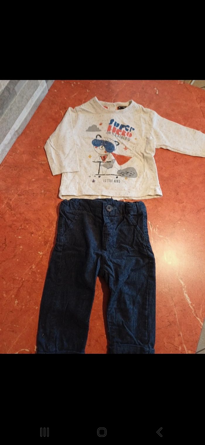 Ensemble comprenant un t.shirt manches longues avec motif à l avant et pressions à l arrière et un pantalon en velours côtelé réglable à la taille