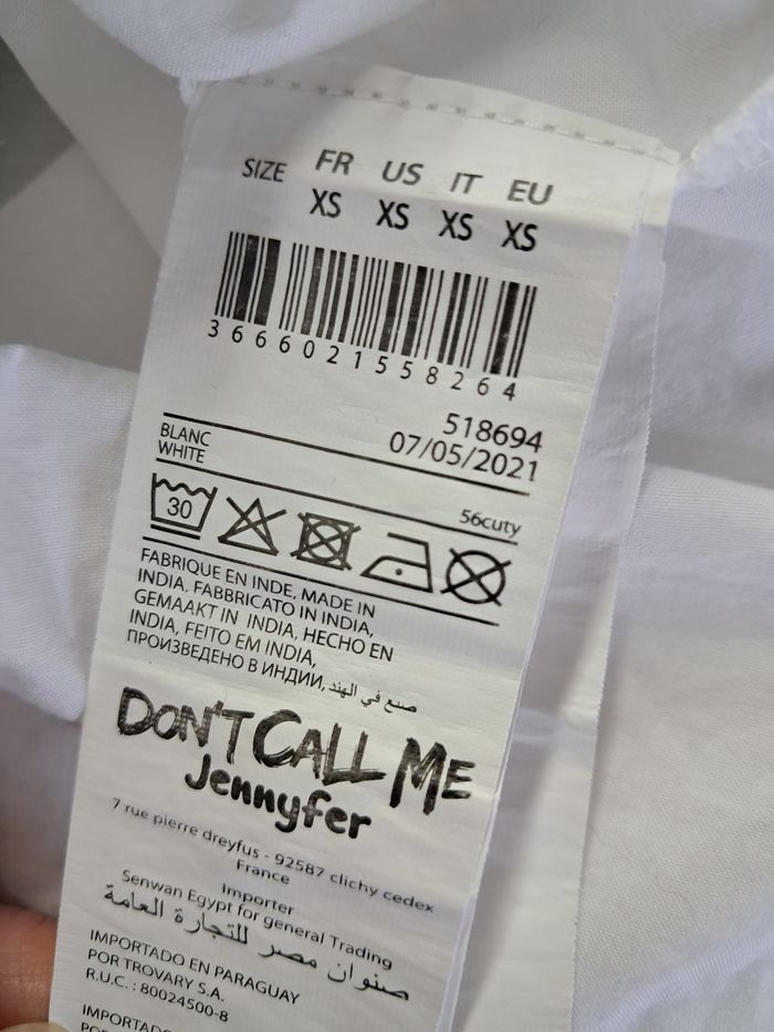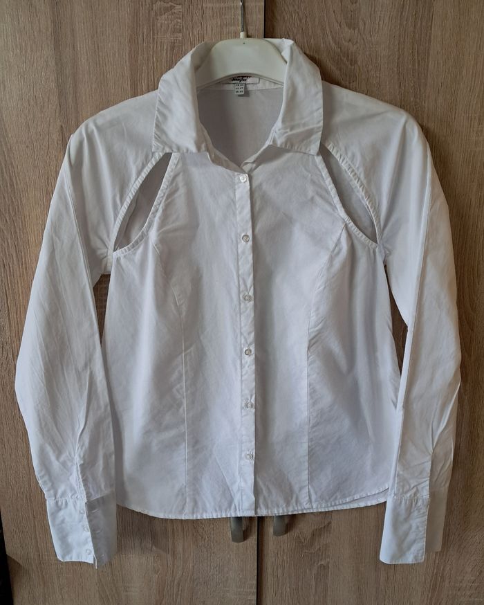 Chemisier Jennyfer taille XS blanc Boutonnière à l'avant et aux manches Bouton de rechange Fendu à l'avant 100% coton