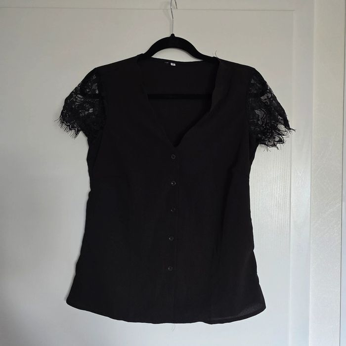 Blouse chemisier noir taille S dentelle aux manches - photo numéro 1