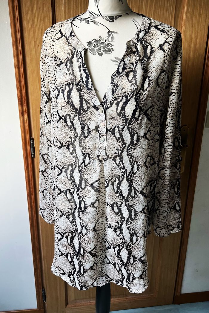 Tunique marron et crème motifs python taille 38/40 Millenium - photo numéro 6