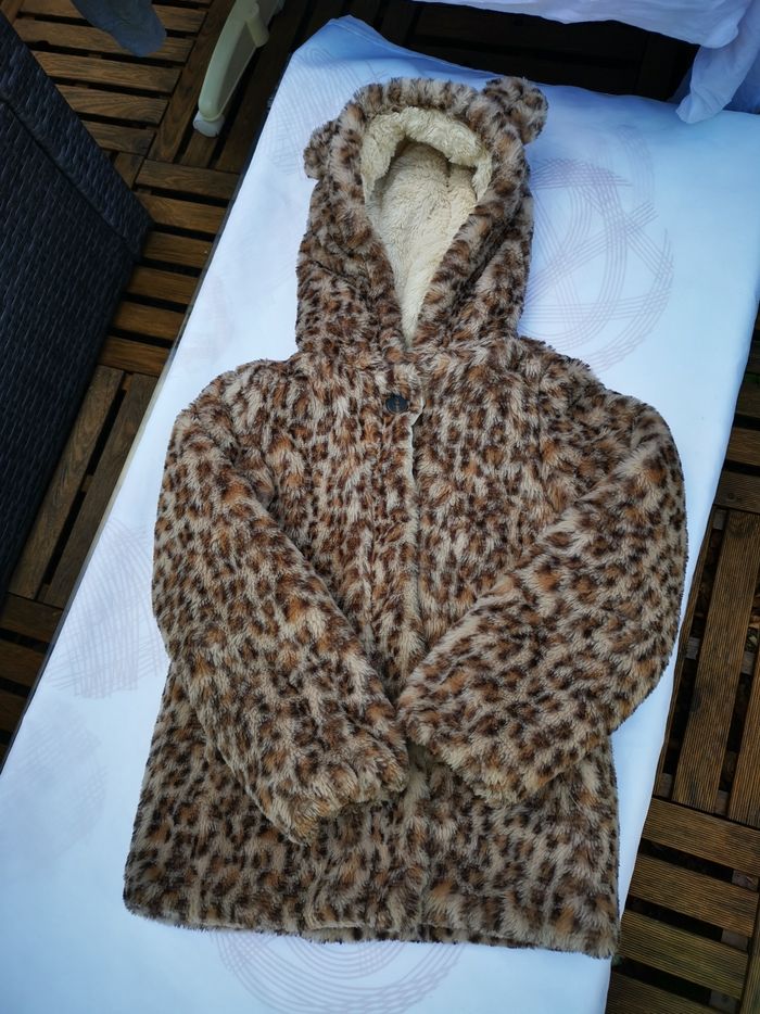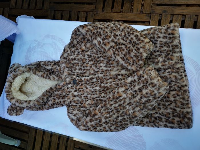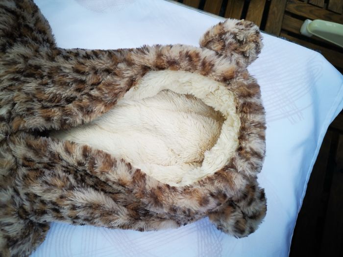 Motif leopard clair. Très chaud. Intérieur beige très douillet. Quasi pas servi. Fermeture éclair