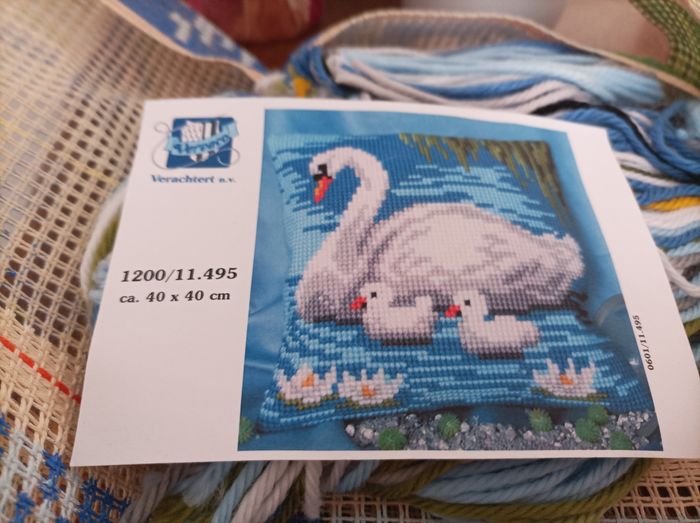 Kit canevas gros trou pour coussin Marque Vervaco modèle cygne le kit comprend le canevas, la laine, l'aiguille à canevas, l'explication et l'image du coussin dimension 40 par 40 cm article neuf sans étiquette Acheté 45,83 euros vendu 22 euros