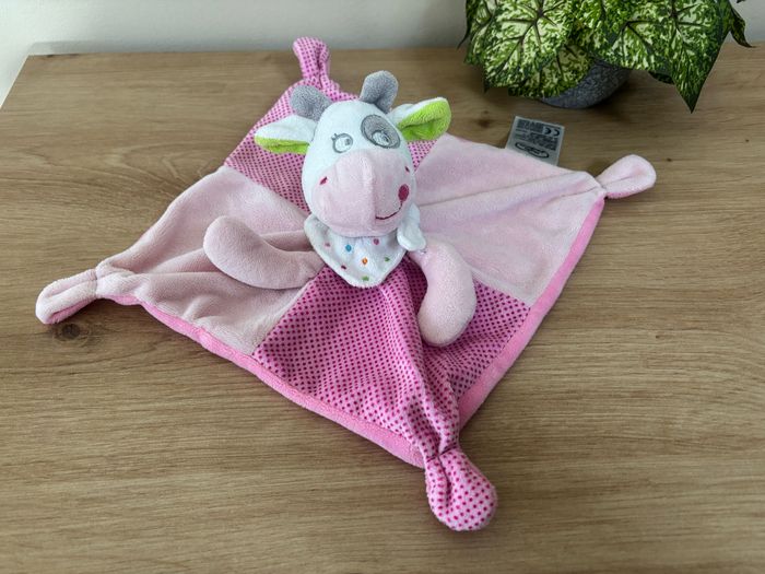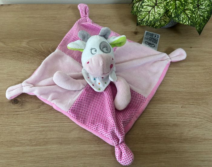 Doudou plat vache rose pois mots d enfants Leclerc