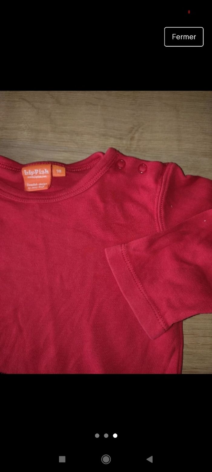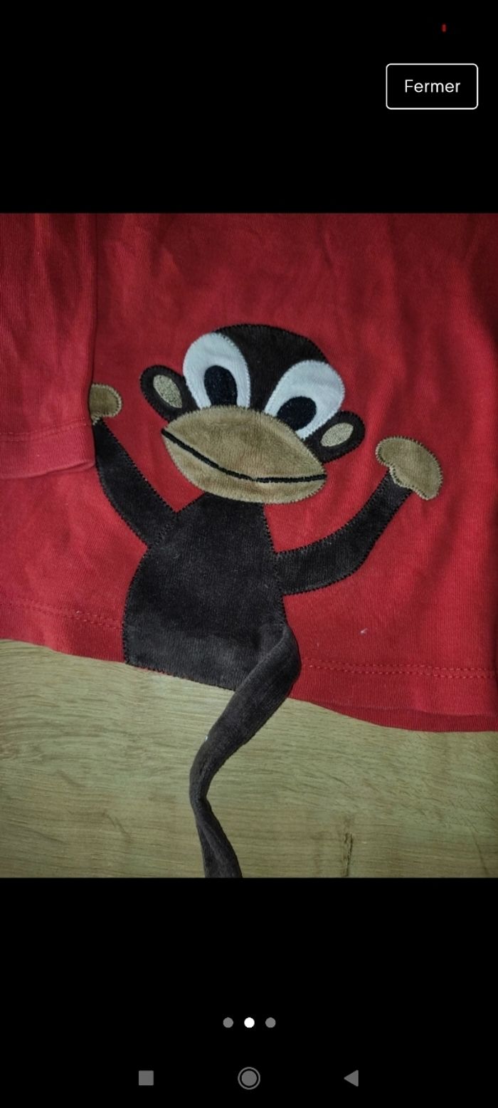 T-shirt rouge a manches longues avec singe qui dépasse