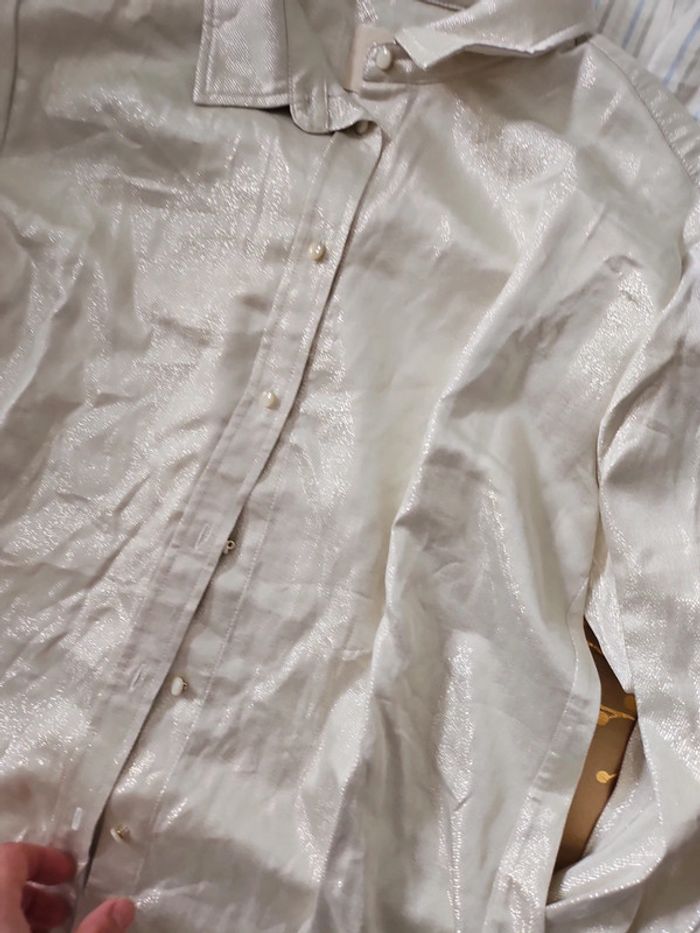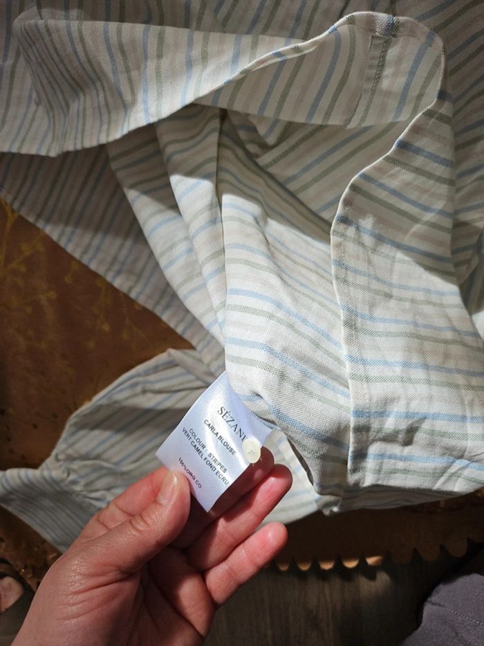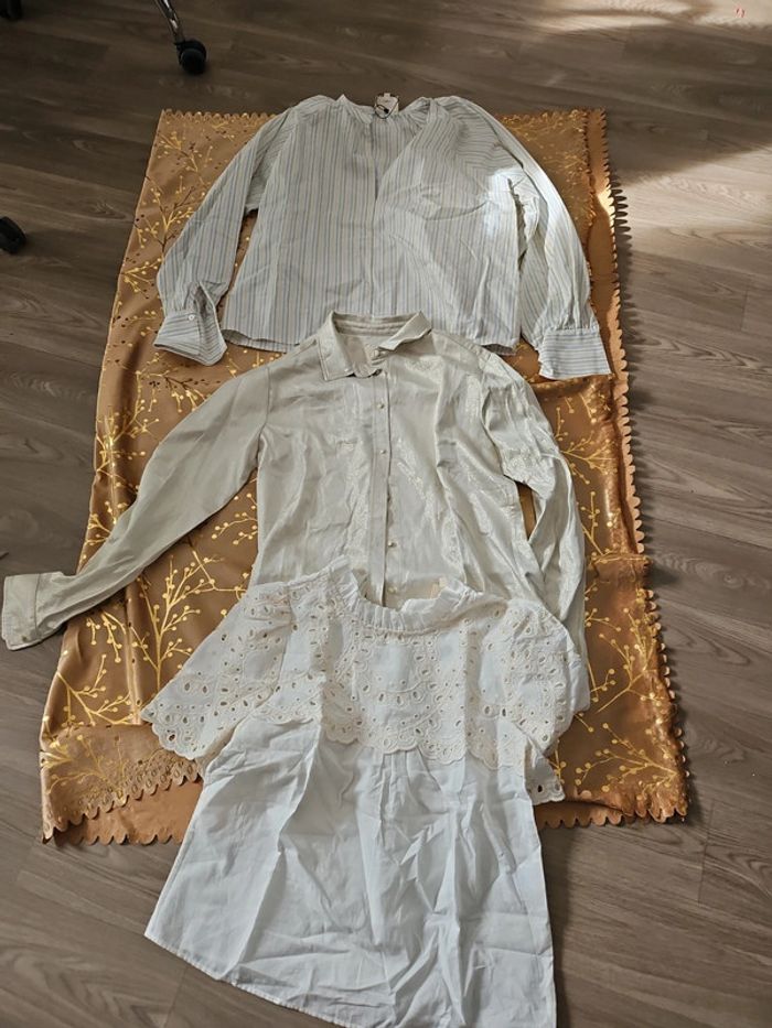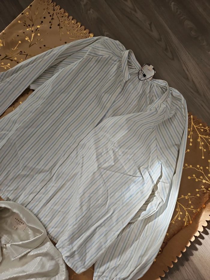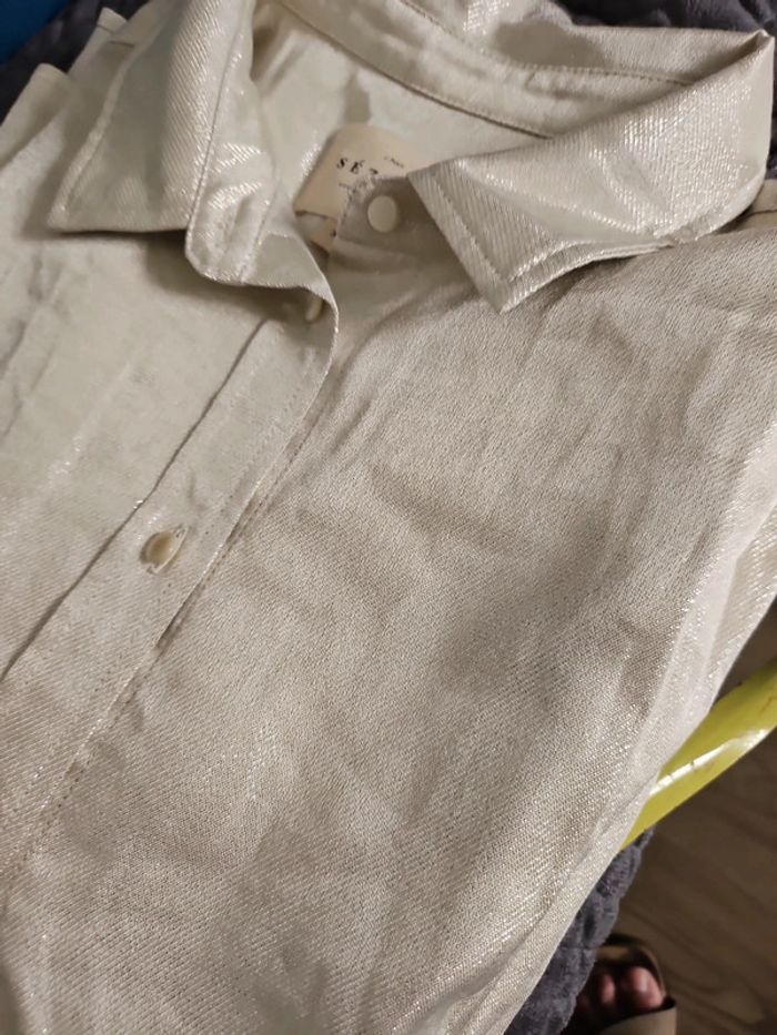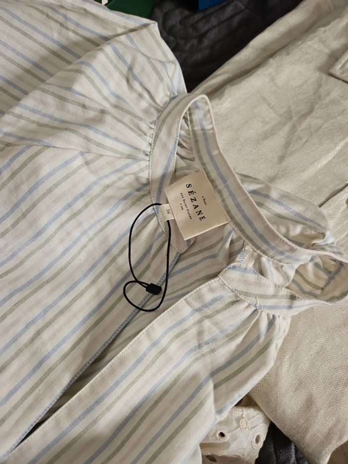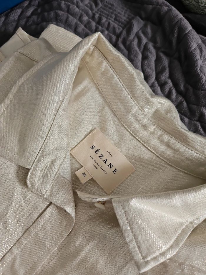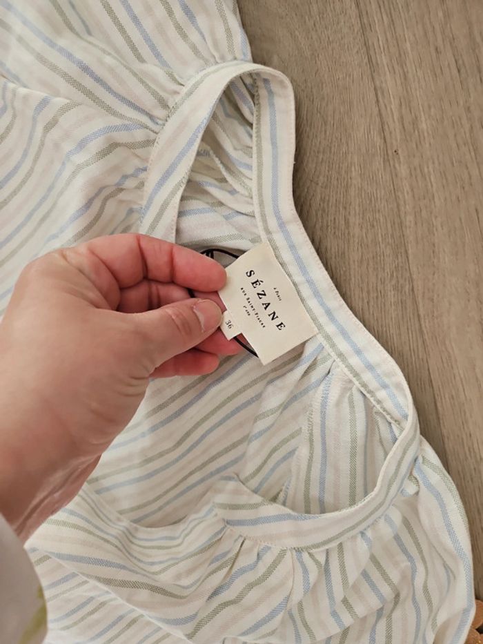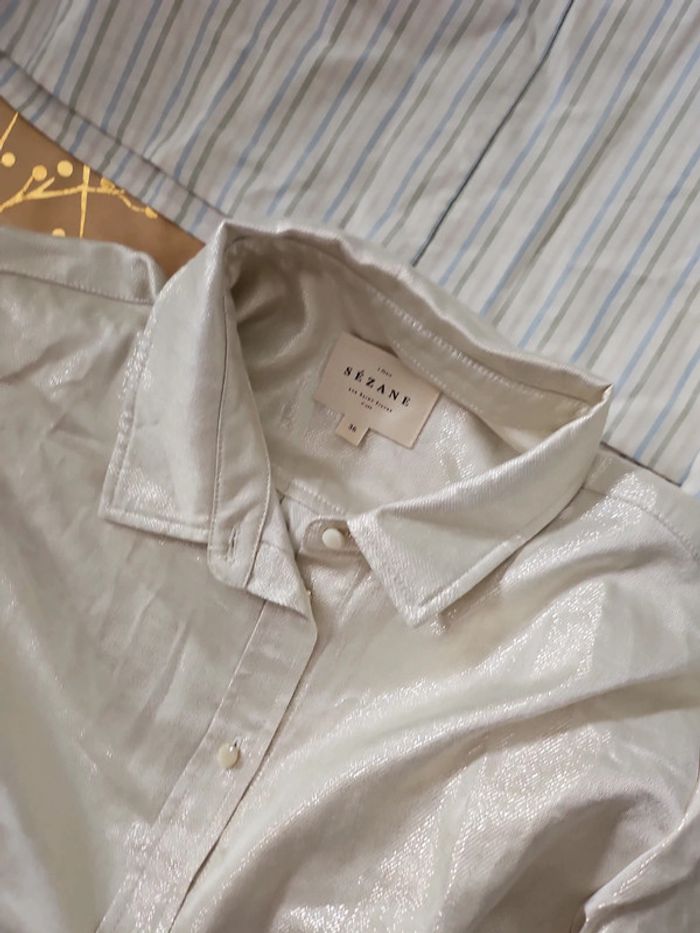 Merci de lire ( prix unitaire et réduit pour les lots ) Articles sézane à peine porté Une chemise pailletée ( pas s'etiquette composition porté une fois ) à 70 e Disponible en annoce seule Chemise à rayures taille 36 ample disponible en annonces seule à 70 e porté 1 fois ( carla blouse ) Blouse sans manche trasparante taille 36 model usine porté 1 fois à 70 e Disponible sele dans une autre annonce ( sans étiquette composition c 'est en coton fin)