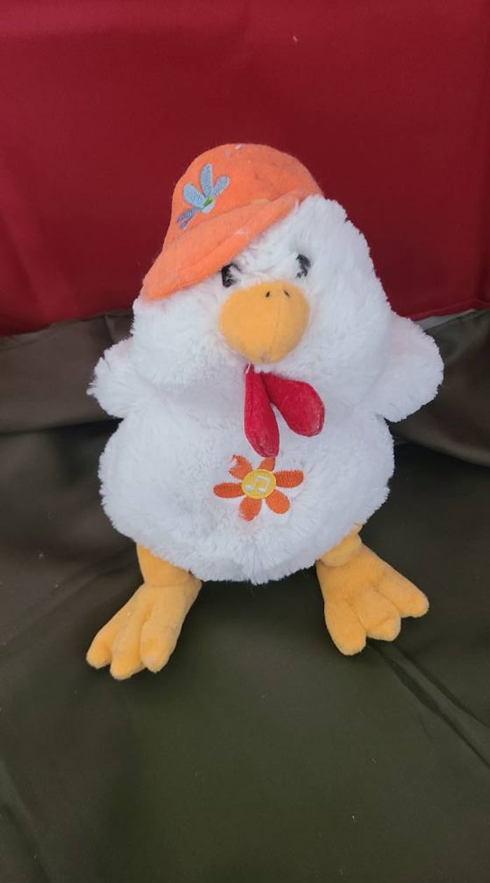Doudou Poule Musical GIPSY Coq Blanc Rouge Sonore Chapeau Orange 17 Cm 74