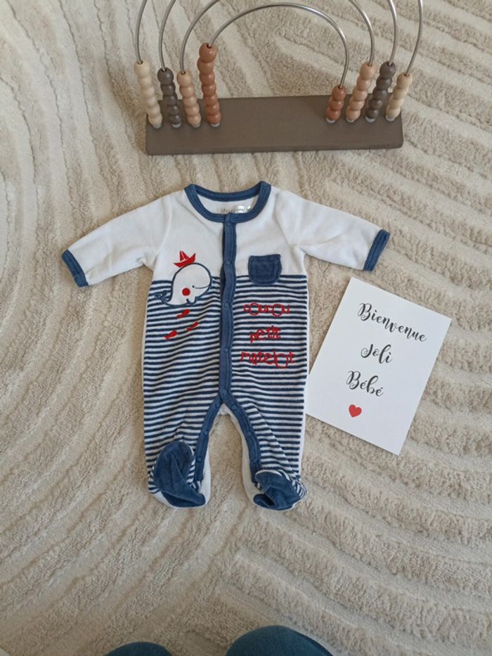 Dors bien / pyjama velours taille naissance. Porte 1 fois. Marque gemo