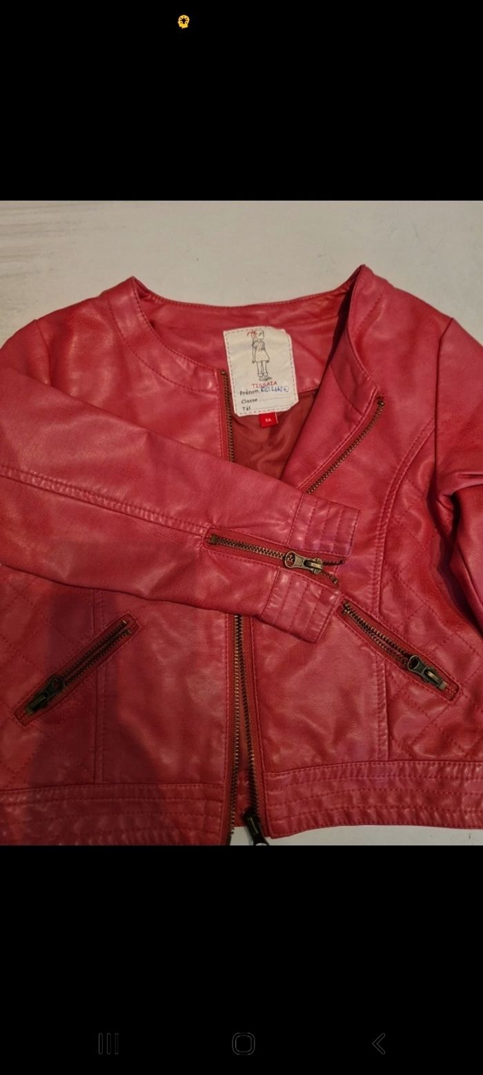 6 ans Rose Imitation Skaï Fermeture zippée 2 poches zippées Manches zippées au bout