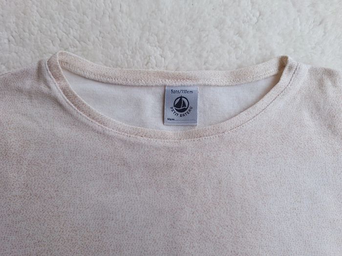 T-shirt large, effet loose. Blanc moucheté beige, quelques petites paillettes. Bien porté. #kiwee1305_5ans Maison non fumeur