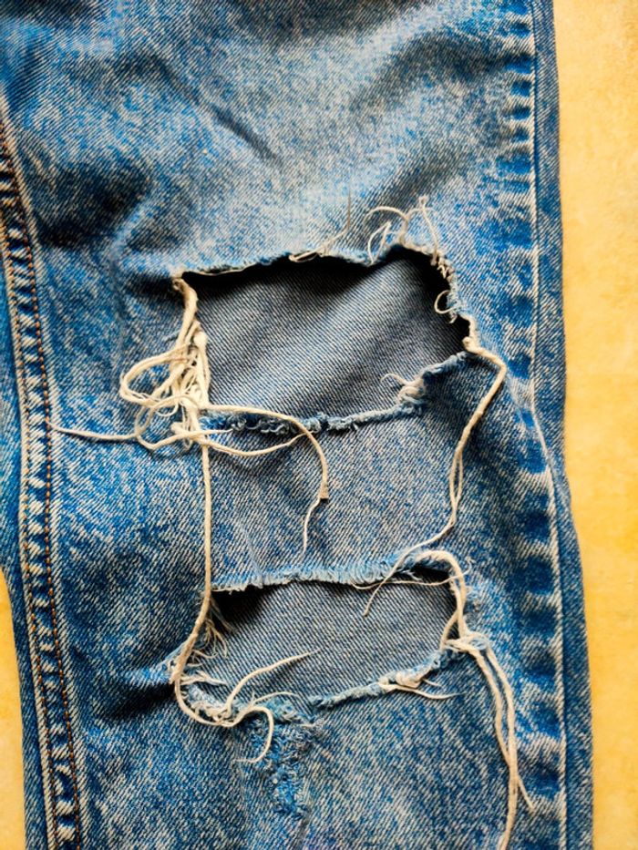 Jean bleu à trous ado fille taille 30 / 3XS mom Jennyfer - photo numéro 1