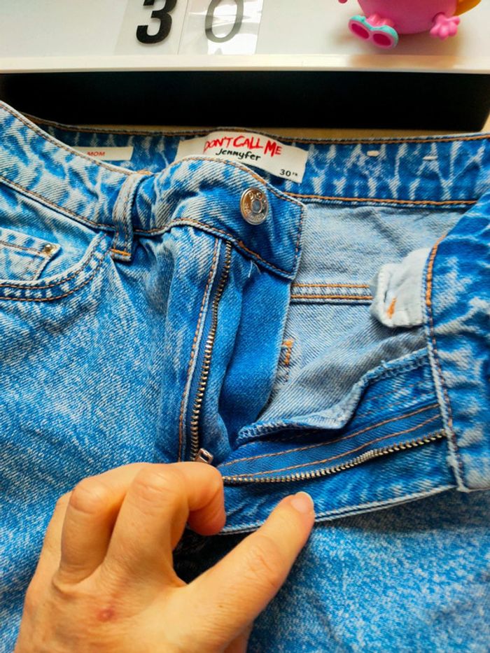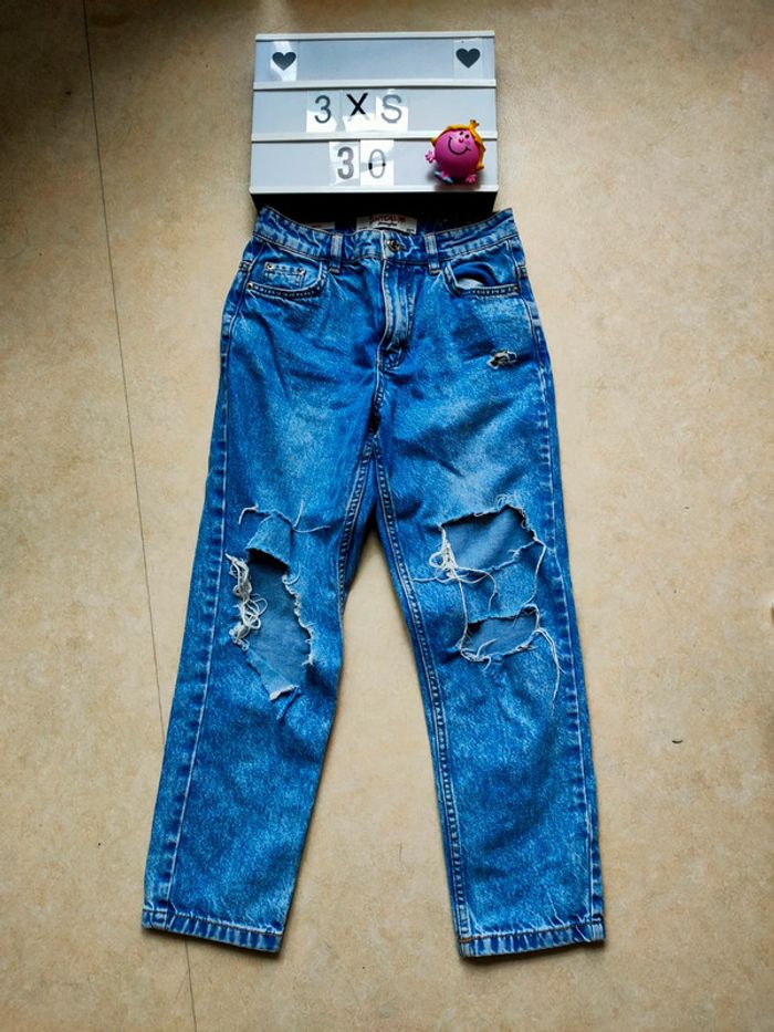 Jean mom fermeture zippée et boutonnée déchiré Coloris bleu Valeur neuf 29.99€ #didinedorataille30 #jennyfer #jeanmom #taille30 #xxxs #didinedoraadofille