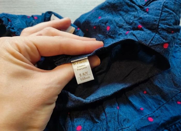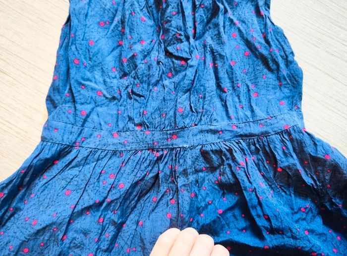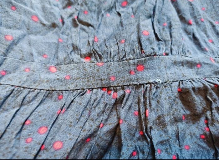 #chapiti8ansfille Petit endroit où la couture a bougé cf photo Bleu a pois rouges