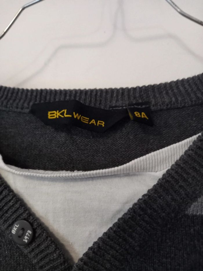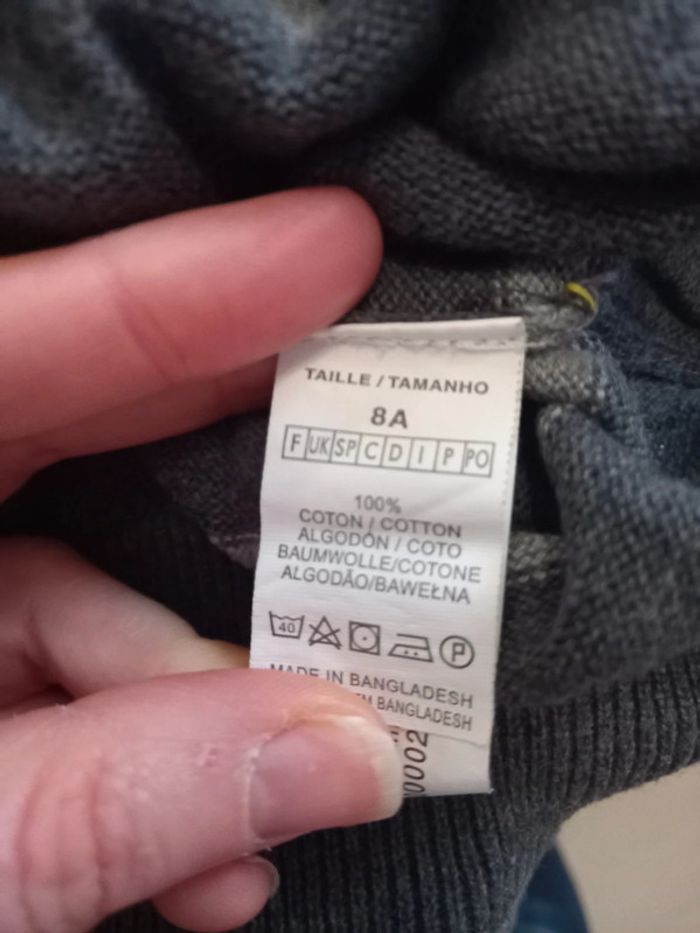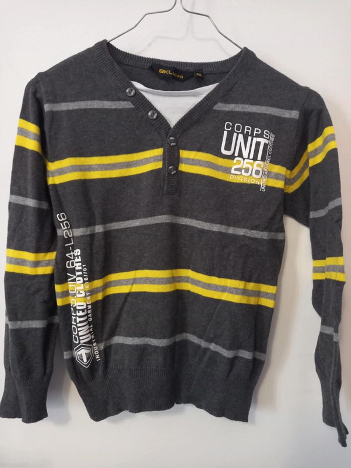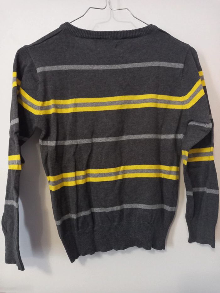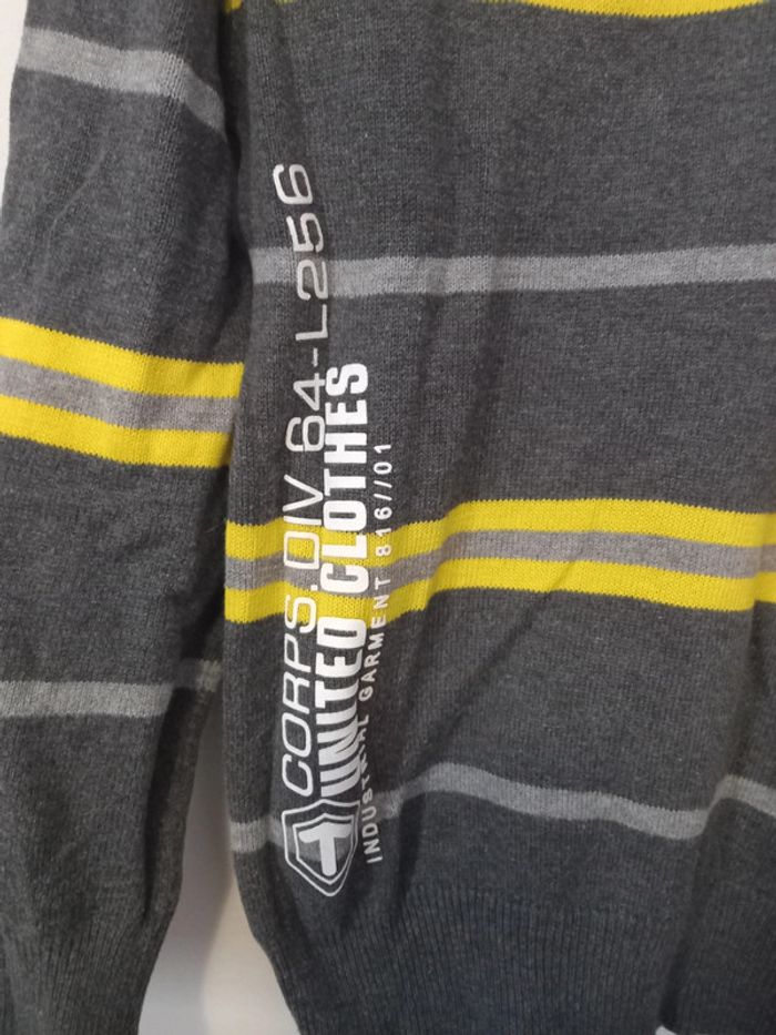Pull fin Com en V avec des boutons (qui ne se défend pas) Manches longues Gris avec des rayures jaunes