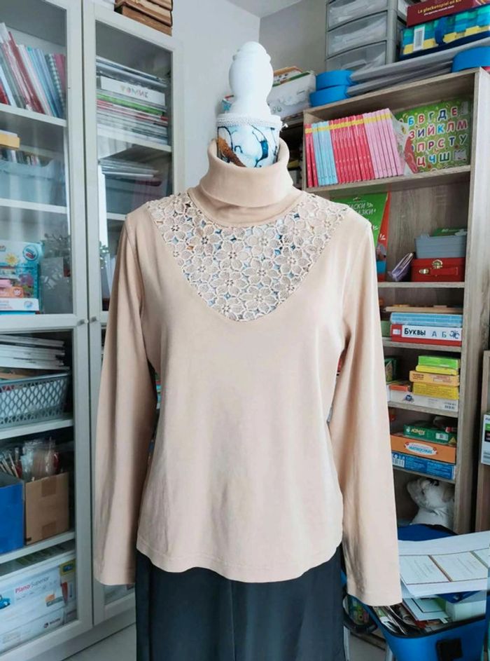 Pull Gio  Anna beige col roulé,  détails dentelle, allure  romantique  chic - photo numéro 1