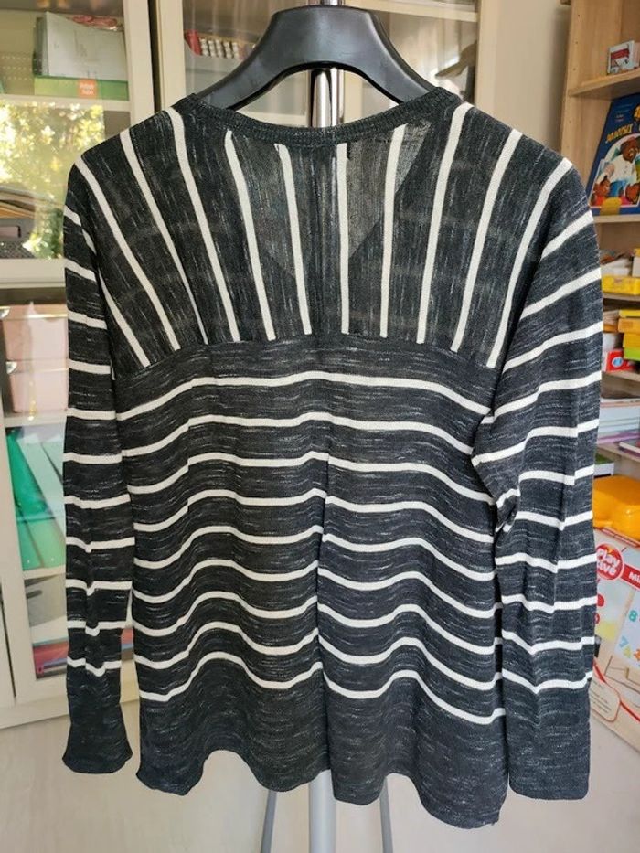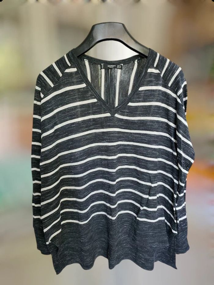Adoptez un style décontracté et tendance avec ce top Mango. Son motif rayé gris et blanc, sa coupe oversize confortable, son encolure V et sa taille S en font une pièce idéale pour un look casual chic au quotidien. Facile à associer avec un jean, un pantalon ou une jupe.