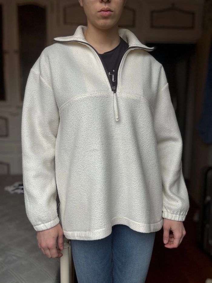 Pull blanc avec zip Très bon état Taille: L Je n’ai pas la marque Envoi rapide et soigné N’hésitez pas si vous avez des questions