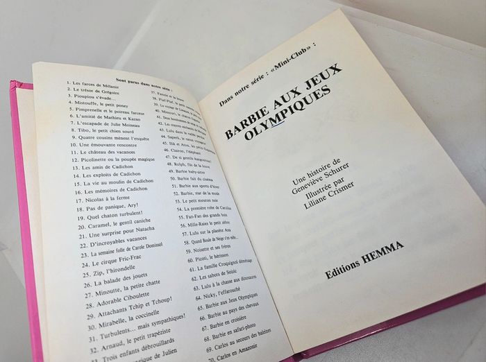 "Barbie aux jeux olympiques". Première bibliothèque des enfants. Hemma. 126 pages. ISBN : 2.8006.2163.X. Écrit dessus jusqu'à la page 19 #Valex_BibliothèqueEnfants