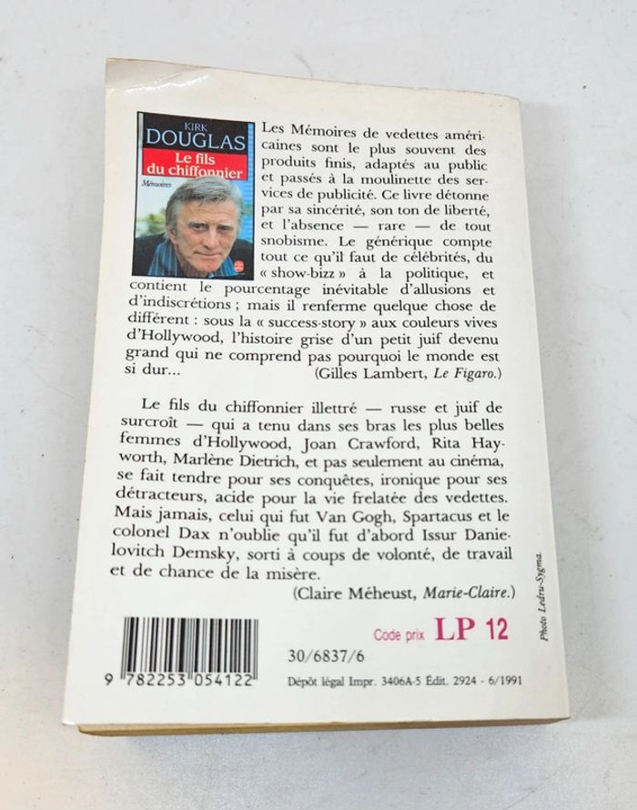 "Le fils du chiffonnier", de Kirk Douglas. Le livre de poche. 640 pages. ISBN : 2.253.05412.7