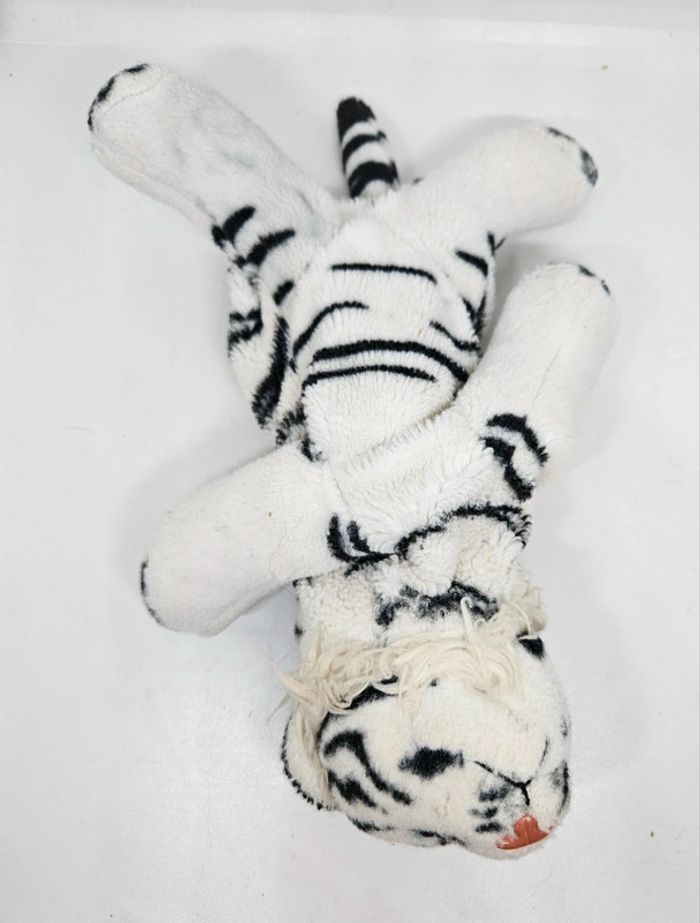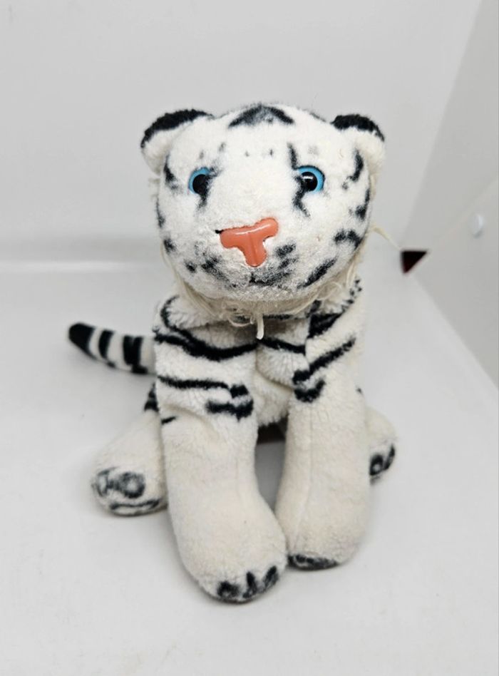 Tigre blanc. Longueur : 19cm. Tachés, voir photos #Valex_PeluchesDoudous
