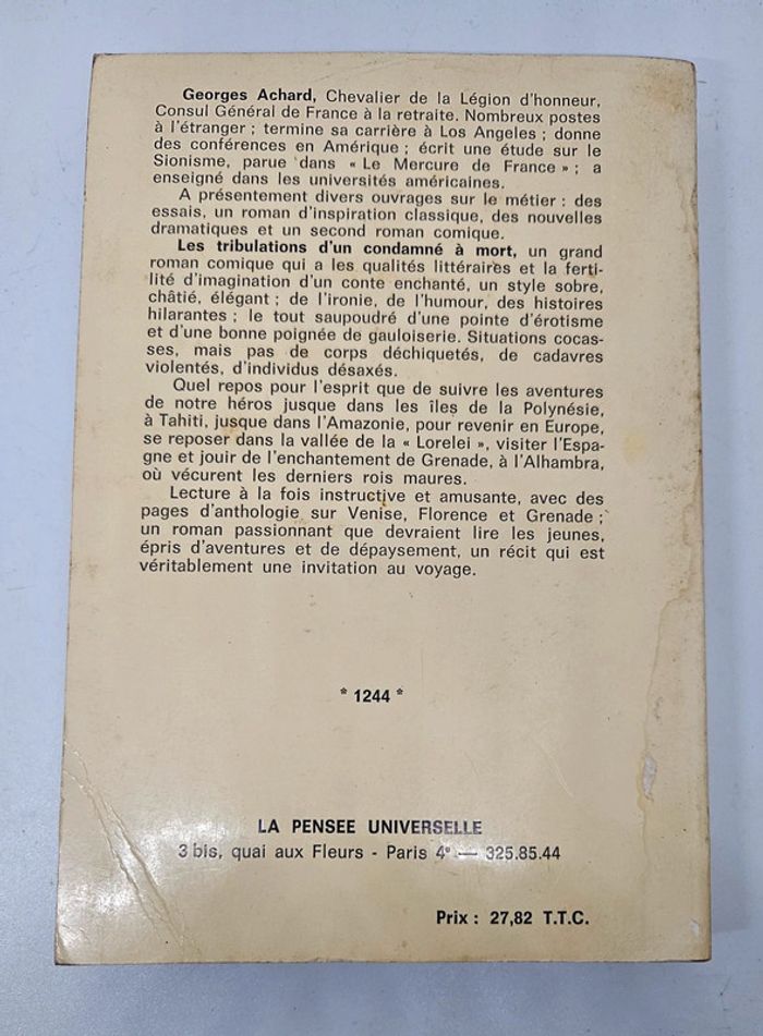 "Les tribulations d'un condamné", de Georges Achard. La pensée universelle. 256 pages