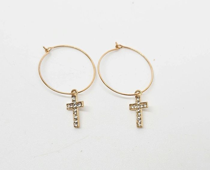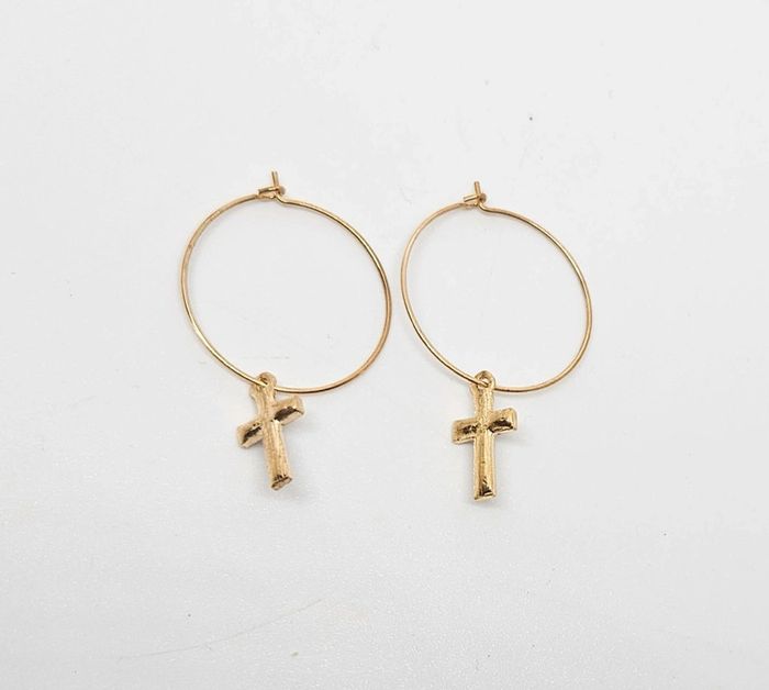 Paire de boucles d'oreilles. Neuve. Anneaux croix doré #Valex_BouclesDoreilles