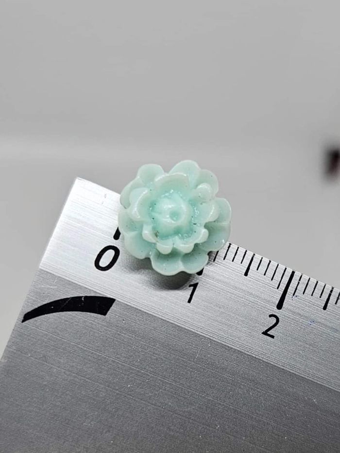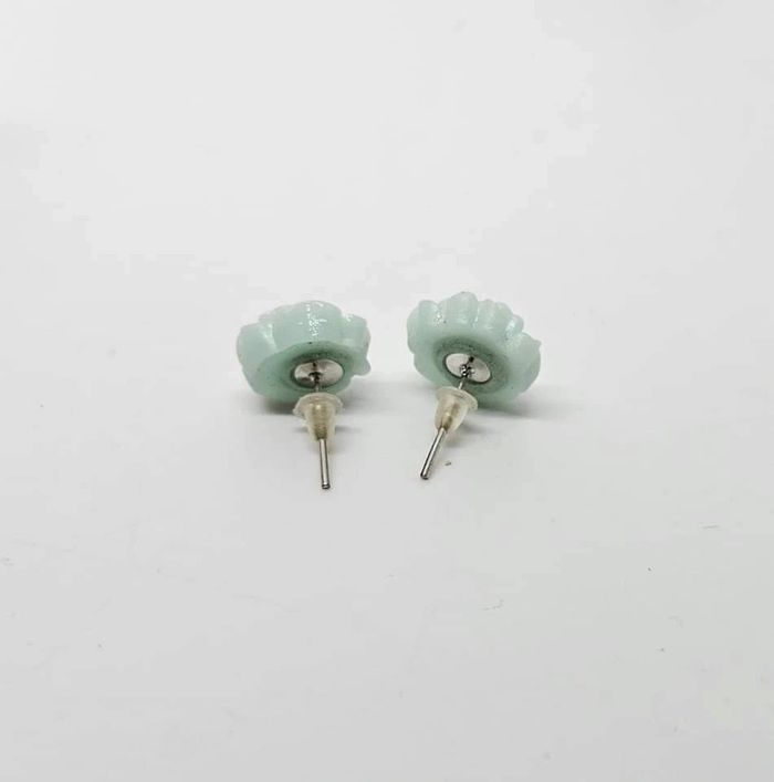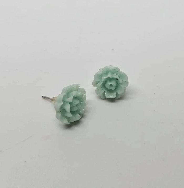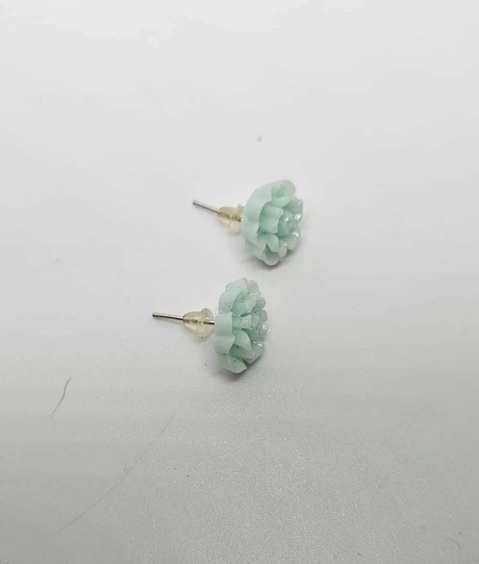 Paire de boucles d'oreilles. Neuve. Fleur menthe