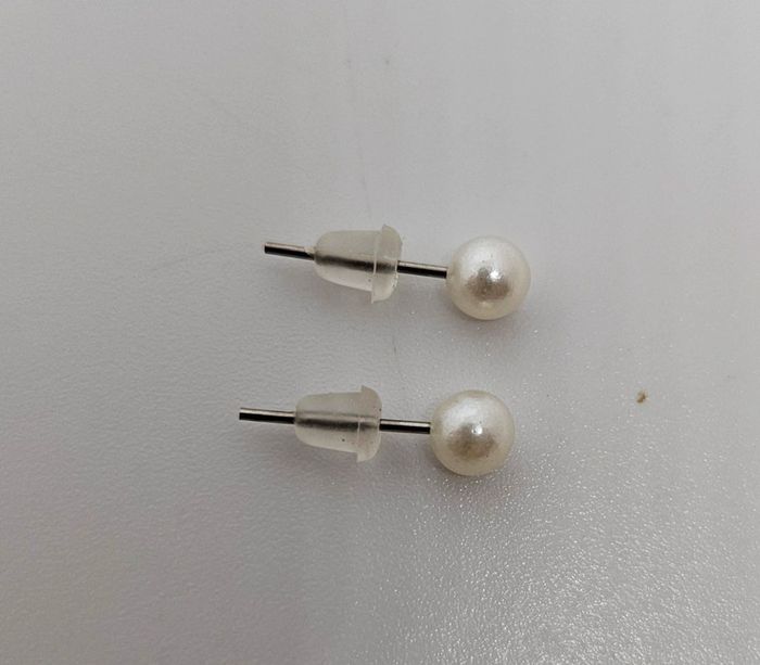 Paire de boucles d'oreilles. Neuve. Toute petite boule blanche - photo numéro 4