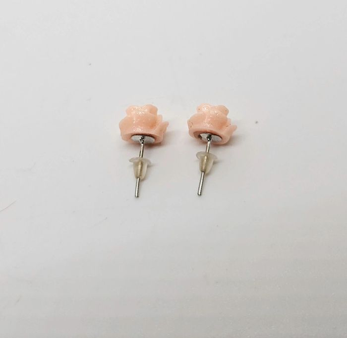 Paire de boucles d'oreilles. Neuve. Fleur beige #Valex_BouclesDoreilles