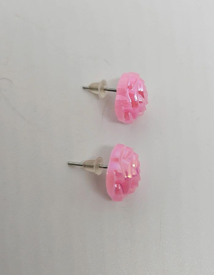 Paire de boucles d'oreilles. Neuve. Fleur rose #Valex_BouclesDoreilles
