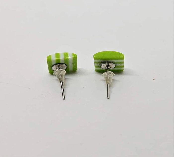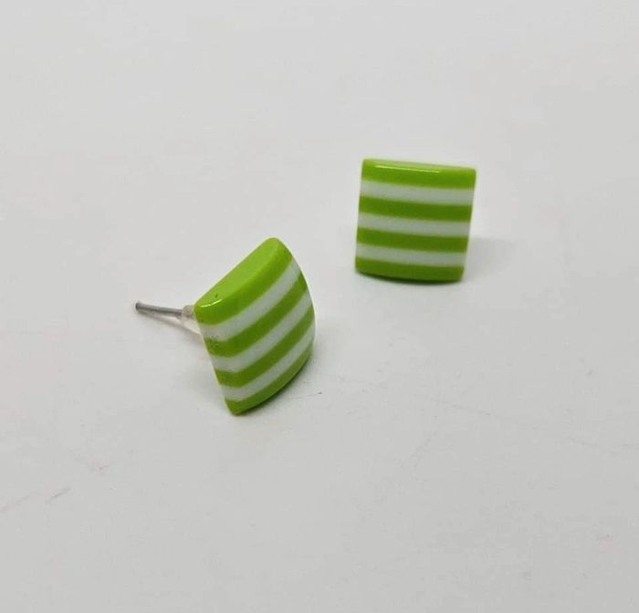 Paire de boucles d'oreilles. Neuve. Carré vert #Valex_BouclesDoreilles
