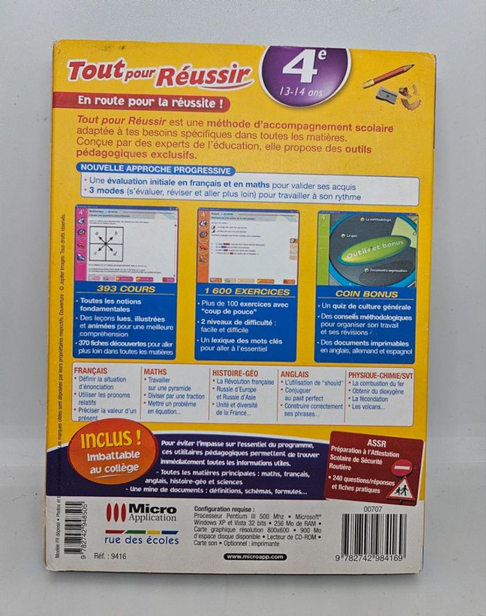 "Tout pour réussi, 4e". (Manque 1 cd-rom). #Valex_InformatiqueImprimantesJeuxPc
