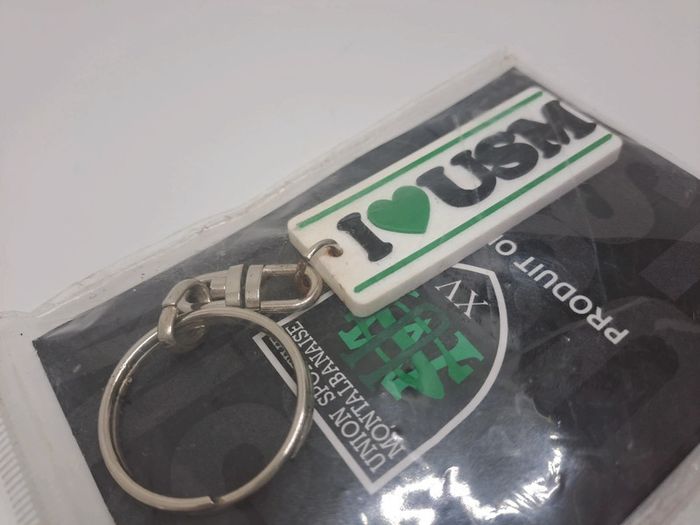 Porte-clés "I💚USM". 5,5x2cm. NEUF, mais un anneau rouillé.