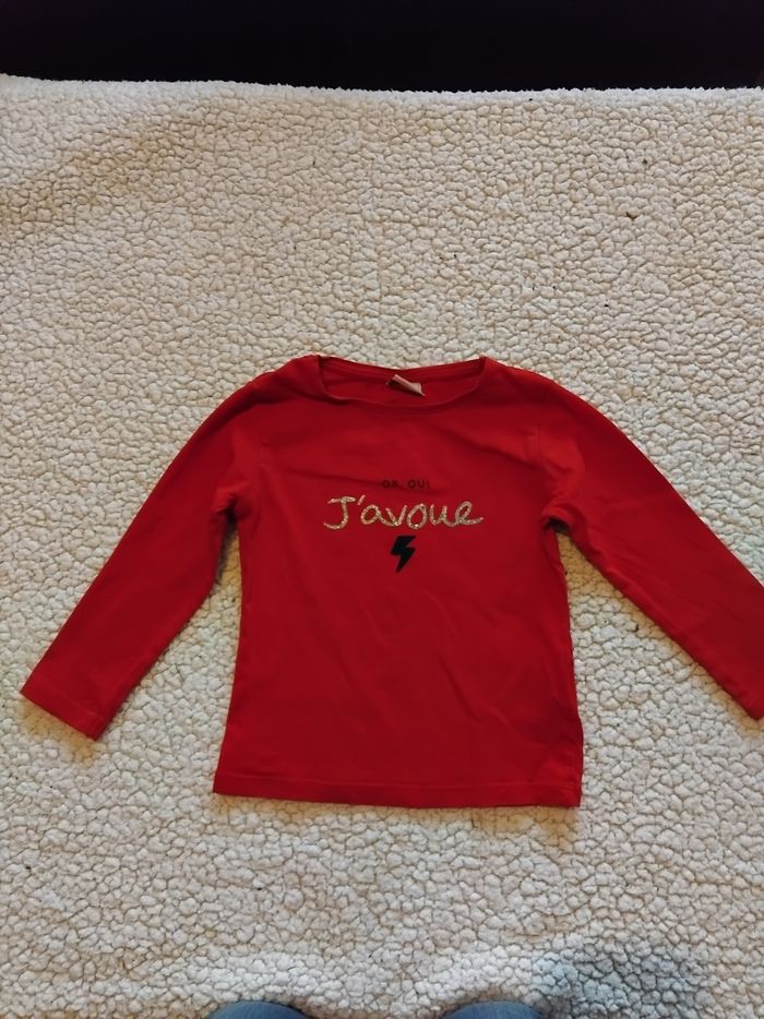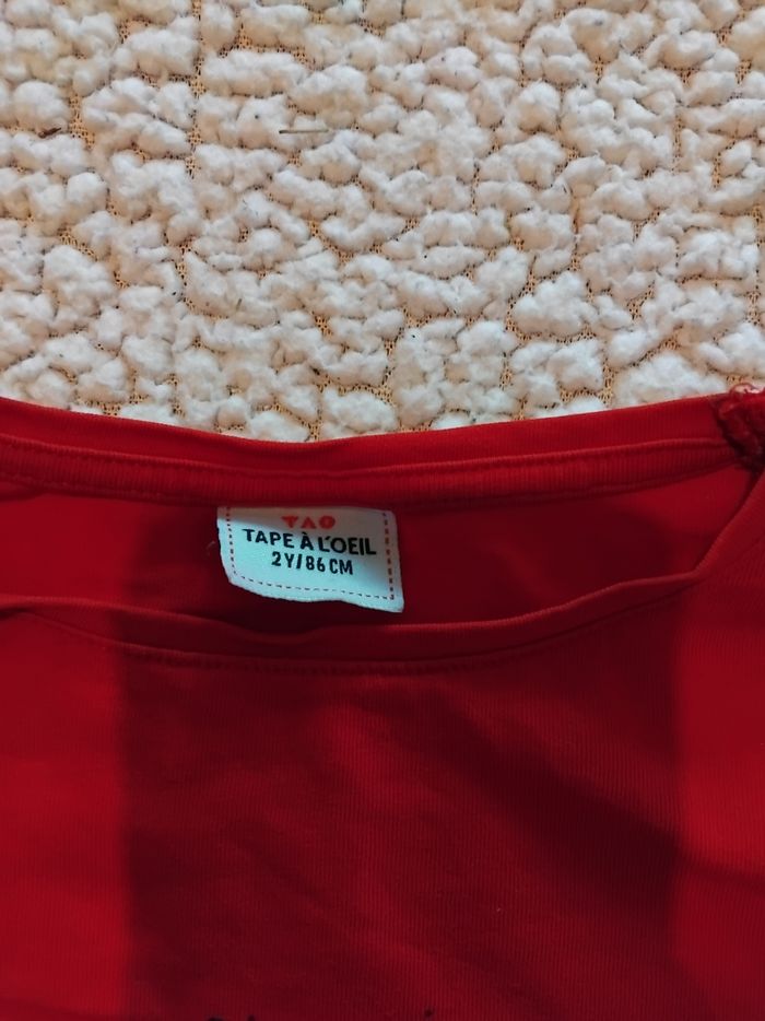 Vends tee shirts manche longue Fille Taille : 2 ans Couleur : rouge Marque : Tape à l oeil Déjà porté
