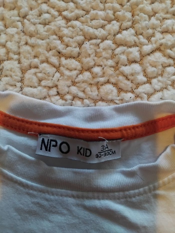 Vends tee shirt manche courte garcon Taille : 3 ans Couleur : blanc Marque : NPO Déjà porté