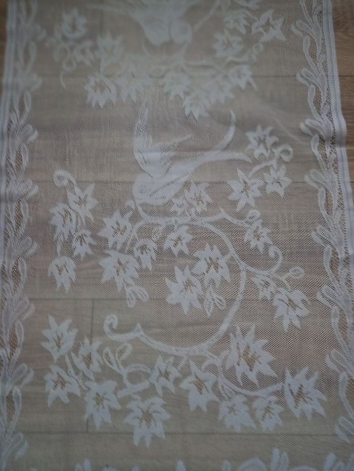 Paire de rideaux blanc "les oiseaux" 60 x 120 cm en très bon état // dimension d’un rideau 60 X 120 cm // passant pour tringle // finition franges