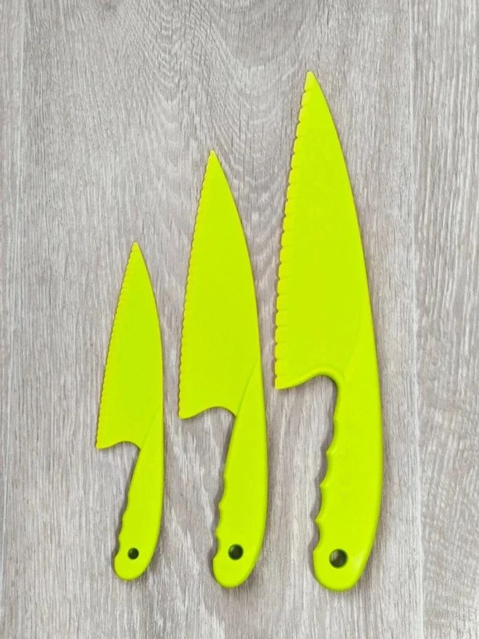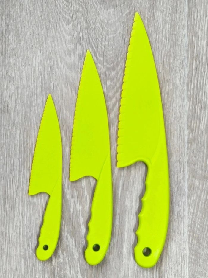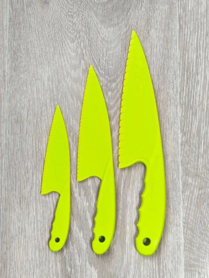 📍NEUF avec emballage. 📍Offrez à votre enfant la liberté de participer en cuisine avec vous de manière sûre et éducative avec cet ensemble de couteaux pour Enfant. 📍Coupe les aliments mais ne tranche pas la peau. 📍Apprentissage de la cuisine en famille. 📍Résistant aux chutes et aux chocs. 📍PLUS DE SÉCURITÉ : Ces couteaux adaptés aux enfants tranchent les aliments, mais ne coupe pas les doigts ! 📍ADAPTÉS : Trois tailles différentes pour s’adapter parfaitement à chaque âge. 📍COMPLET : Tout le nécessaire pour couper et façonner. 📍INDEPENDANCE : Augmente l’autonomie, développe la motricité fine et favorise la coordination main-oeil par l’apprentissage pratique de la cuisine. 📍Taille des 3 couteaux : -> 29 x 6 cm / 24 x 5 cm / 18 x 4 cm. 👉Pour trouver d'autres activités c'est par ici : 🔎#elisabethdesignCuisineEnfant 📫⏳ Envoi rapide et soigné le jour même de l'achat dans la mesure du possible! 🤝 Frais de port ajusté au plus bas.