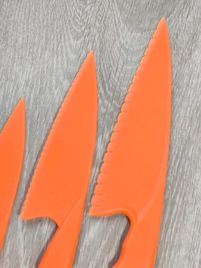 📍NEUF avec emballage. 📍Offrez à votre enfant la liberté de participer en cuisine avec vous de manière sûre et éducative avec cet ensemble de couteaux pour Enfant. 📍Coupe les aliments mais ne tranche pas la peau. 📍Apprentissage de la cuisine en famille. 📍Résistant aux chutes et aux chocs. 📍PLUS DE SÉCURITÉ : Ces couteaux adaptés aux enfants tranchent les aliments, mais ne coupe pas les doigts ! 📍ADAPTÉS : Trois tailles différentes pour s’adapter parfaitement à chaque âge. 📍COMPLET : Tout le nécessaire pour couper et façonner. 📍INDEPENDANCE : Augmente l’autonomie, développe la motricité fine et favorise la coordination main-oeil par l’apprentissage pratique de la cuisine. 📍Taille des 3 couteaux : -> 29 x 6 cm / 24 x 5 cm / 18 x 4 cm. 👉Pour trouver d'autres activités c'est par ici : 🔎#elisabethdesignCuisineEnfant 📫⏳ Envoi rapide et soigné le jour même de l'achat dans la mesure du possible! 🤝 Frais de port ajusté au plus bas.
