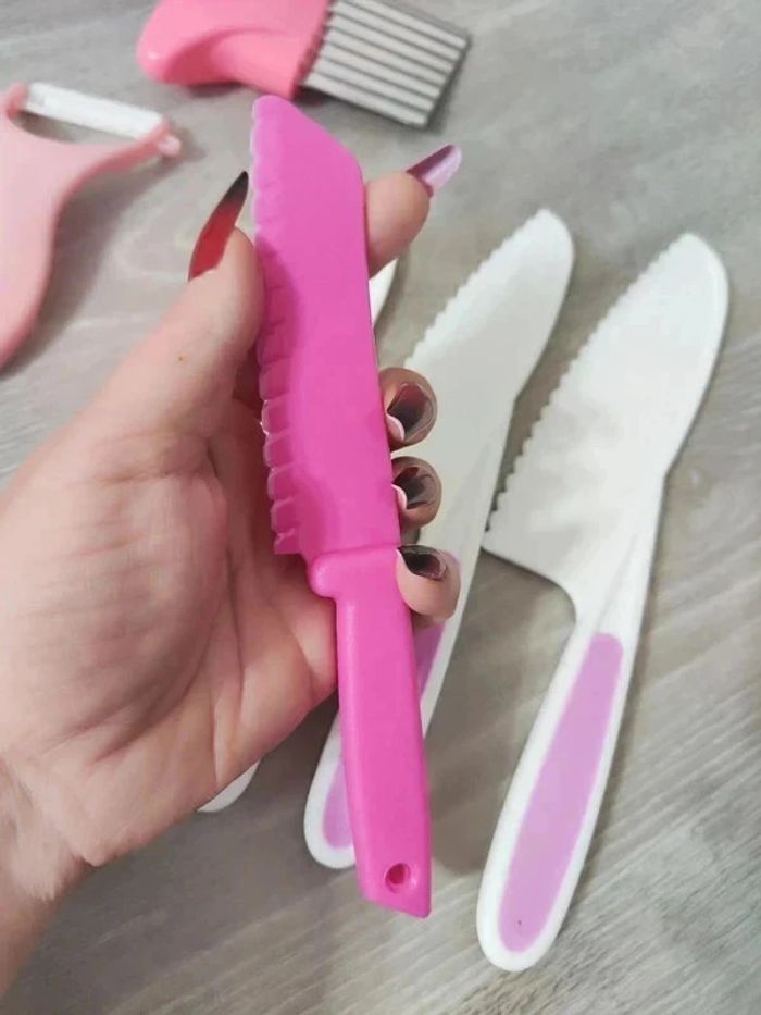 📍NEUF. 📍Offrez à votre enfant la liberté de participer en cuisine avec vous de manière sûre et éducative avec cet ensemble de couteaux pour Enfant. 📍Coupe les aliments mais ne tranche pas la peau. 📍Apprentissage de la cuisine en famille. 📍Résistant aux chutes et aux chocs. 📍PLUS DE SÉCURITÉ : Ces couteaux adaptés aux enfants tranchent les aliments, mais ne coupe pas les doigts ! 📍ADAPTÉS : Trois tailles différentes pour s’adapter parfaitement à chaque âge et un couteau de paume en bois pour les tout-petits. 📍COMPLET : Tout le nécessaire pour couper, éplucher et façonner. 📍INDEPENDANCE : Augmente l’autonomie, développe la motricité fine et favorise la coordination main-oeil par l’apprentissage pratique de la cuisine. 📍Taille des 4 couteaux : -> 27,5 x 5 cm / 24,5 x 5 cm / 22 x 4 cm / 19,5 x 3 cm. 👉Pour trouver d'autres activités c'est par ici : 🔎#elisabethdesignCuisineEnfant 📫⏳ Envoi rapide et soigné le jour même de l'achat dans la mesure du possible! 🤝 Frais de port ajusté au plus bas.