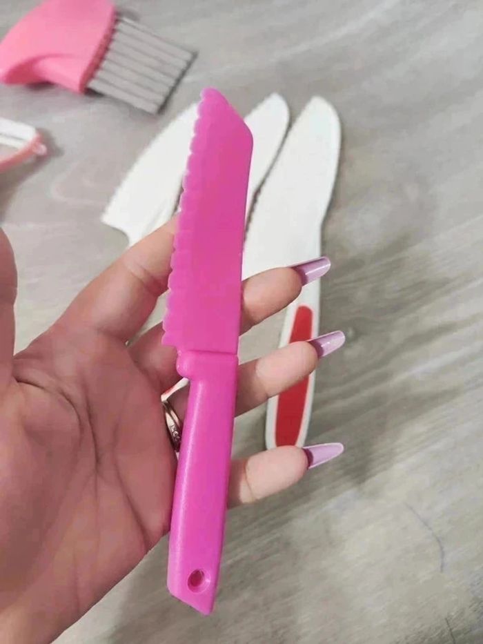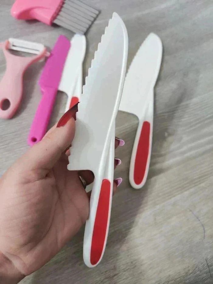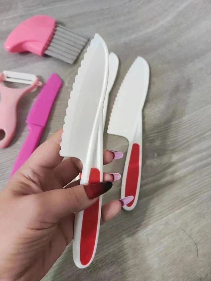 📍NEUF. 📍Offrez à votre enfant la liberté de participer en cuisine avec vous de manière sûre et éducative avec cet ensemble de couteaux pour Enfant. 📍Coupe les aliments mais ne tranche pas la peau. 📍Apprentissage de la cuisine en famille. 📍Résistant aux chutes et aux chocs. 📍PLUS DE SÉCURITÉ : Ces couteaux adaptés aux enfants tranchent les aliments, mais ne coupe pas les doigts ! 📍ADAPTÉS : Trois tailles différentes pour s’adapter parfaitement à chaque âge et un couteau de paume en bois pour les tout-petits. 📍COMPLET : Tout le nécessaire pour couper, éplucher et façonner. 📍INDEPENDANCE : Augmente l’autonomie, développe la motricité fine et favorise la coordination main-oeil par l’apprentissage pratique de la cuisine. 📍Taille des 4 couteaux : -> 27,5 x 5 cm / 24,5 x 5 cm / 22 x 4 cm / 19,5 x 3 cm. 👉Pour trouver d'autres activités c'est par ici : 🔎#elisabethdesignCuisineEnfant 📫⏳ Envoi rapide et soigné le jour même de l'achat dans la mesure du possible! 🤝 Frais de port ajusté au plus bas. Dispo 2.