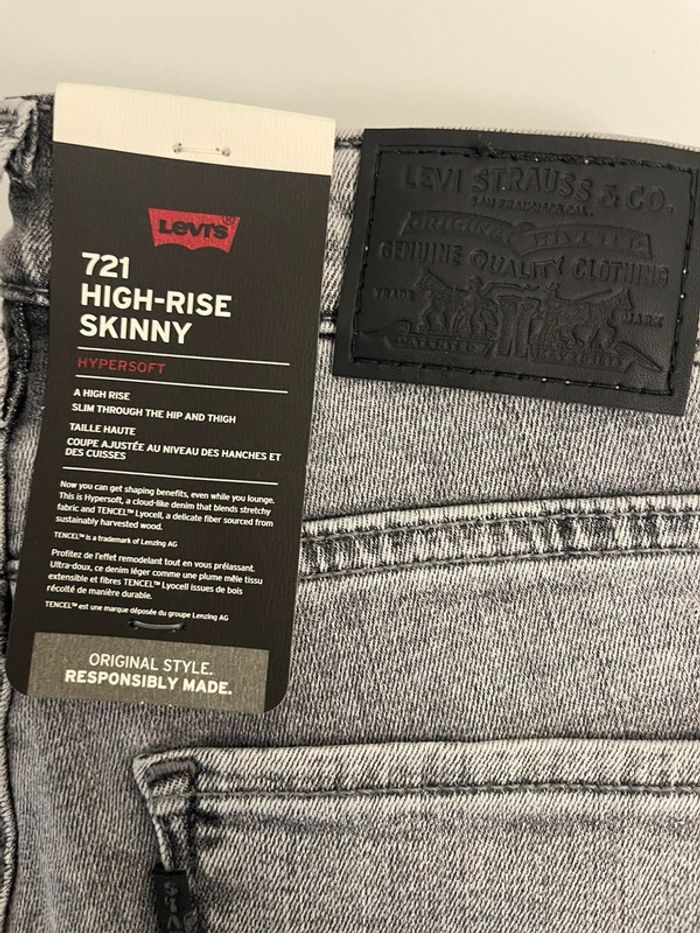 Jean Levis 721 High Rise Skinny gris uni avec une coupe ne skinny.