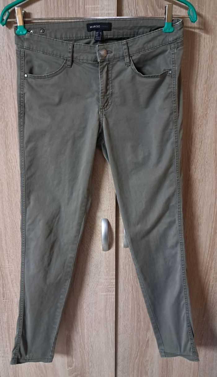 Pantalon Mango taille 36 kaki Poches latérales et à l'arrière Bouton et braguette Bien porté mais bon état