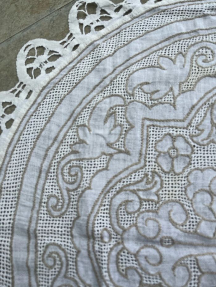 Achète dans une brocante. Vintage et en excellent état Ni usé ni jauni Diamètre 75 cm Broderie et dentelle