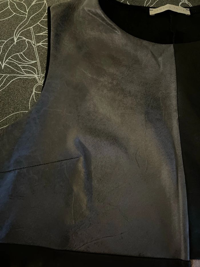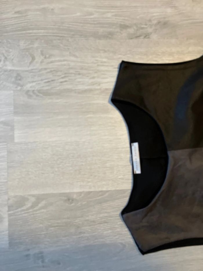 Portée 1 fois pour un événement Jolie robe droite légèrement arrondi aux niveaux des hanches. Sans manches Textile imitation daim Longueur 93 cm Largeur épaule 41 cm Largeur aisselles 47 cm Largeur hanche 52 cm